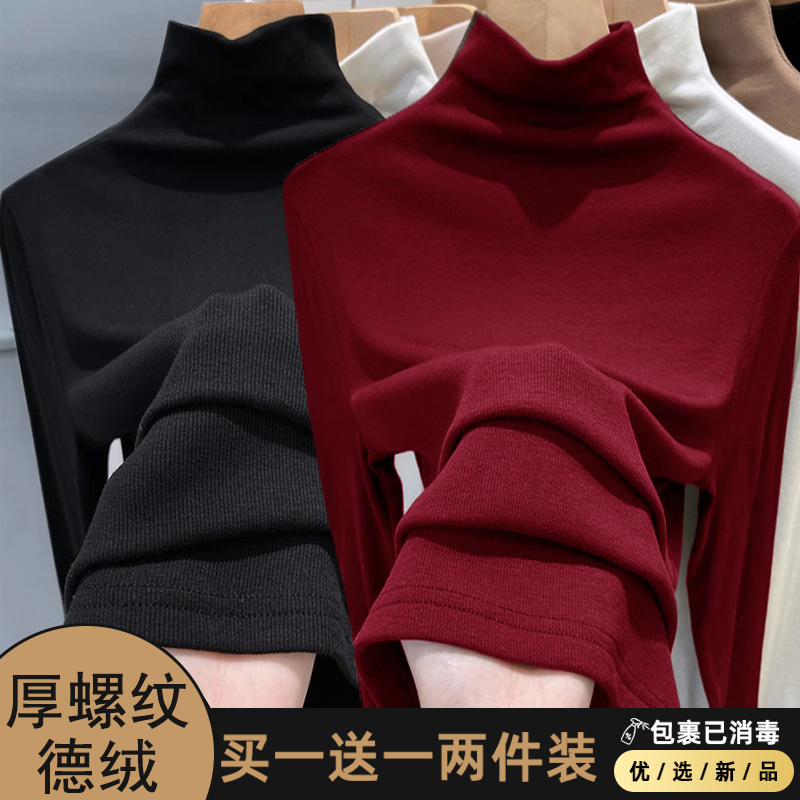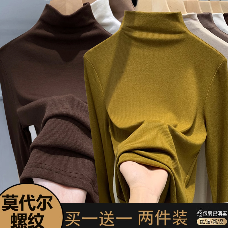 t恤上衣黑色 黑保暖德绒长袖 莫代尔半高领打底衫 女内搭2025新款