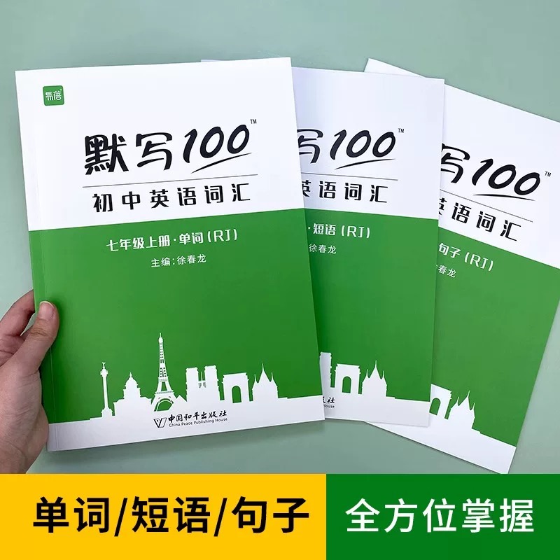 易蓓默写100英语人教版 初中七八九年级英语单词词汇记忆听写本初一二三英汉互译同步课本练习英语短语句子默写作业本专项强化训练