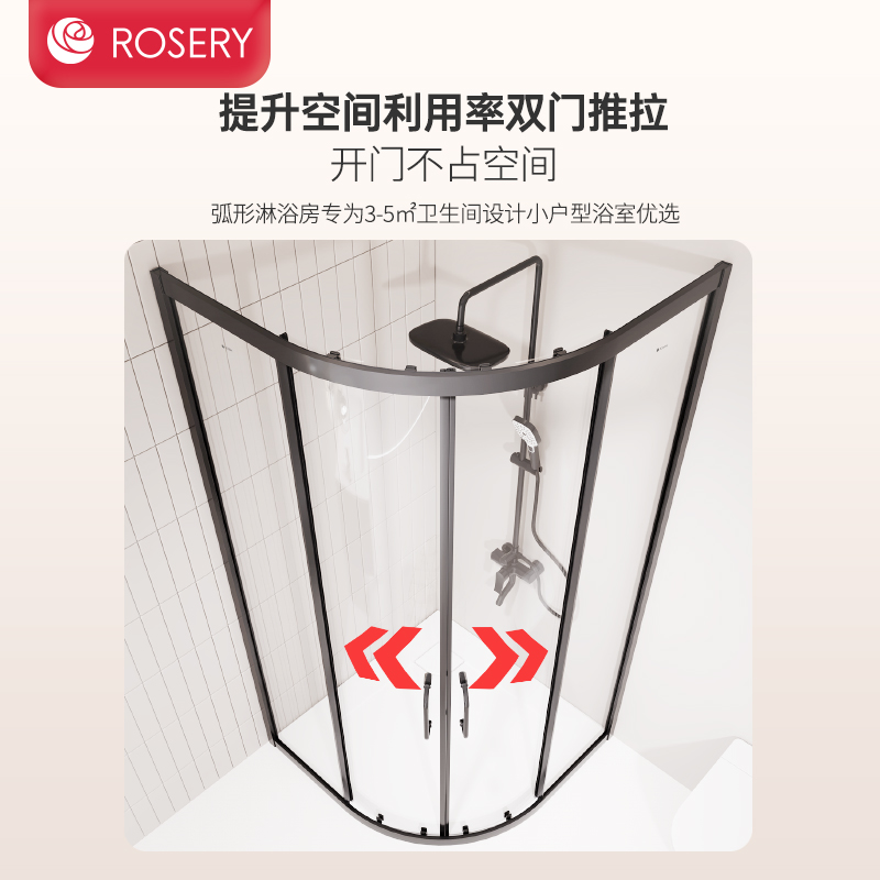 玫瑰岛弧扇形淋浴洗澡房家用卫生间干湿分离浴室隔断玻璃门定制D4