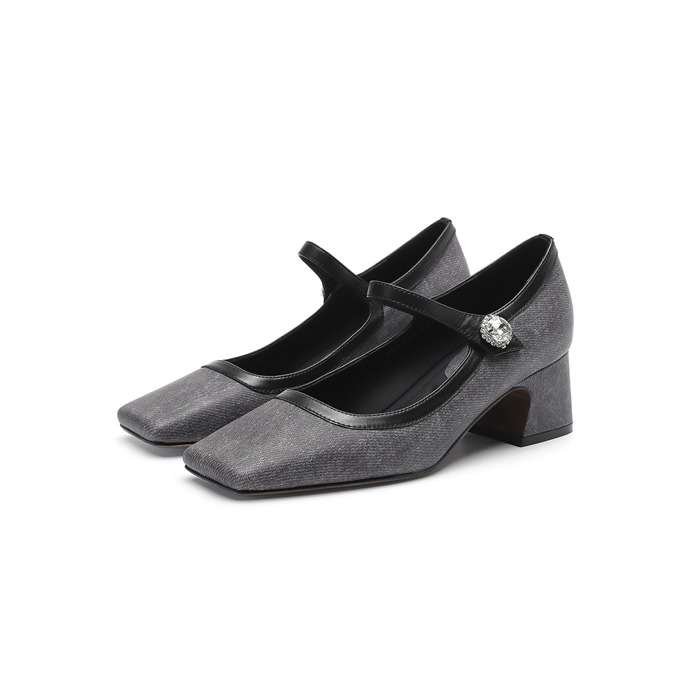 一字带法式 优雅方头玛丽珍单鞋 粗跟RWL230110 秋款 诺贝达女鞋