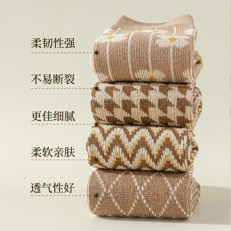 浪莎袜子女中筒袜秋冬复古风棉袜高筒网红ins潮春秋厚款 长筒长袜