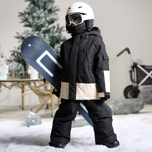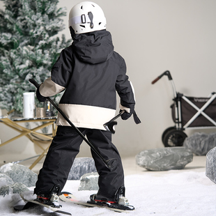 原创黑白撞色儿童户外强防水透气滑雪服夹棉加厚三合一冲锋衣套装