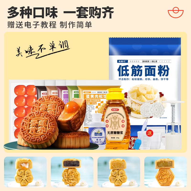 套装 月饼制作材料全套餐diy手工自制做广式 五仁蛋黄莲蓉月饼皮