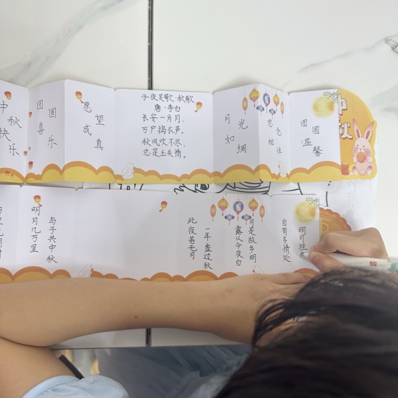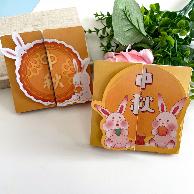 创意卡通中秋节快乐DIY自制书法贺卡中国风月饼礼盒空白手写留言祝福语古诗绘画手工材料对折卡片学生送老师