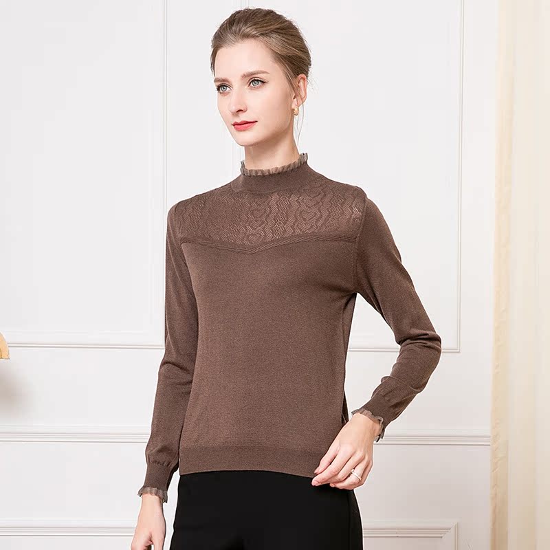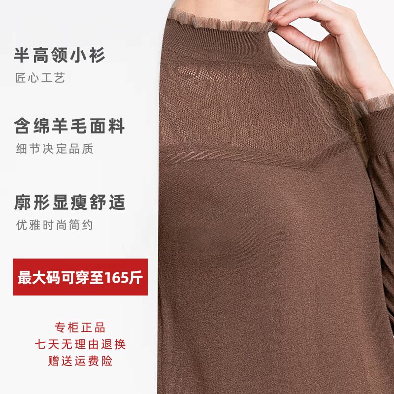 赏心岁月中老年妈妈针织打底衫 荷叶边大弹力百搭洋气 半高领羊毛衫