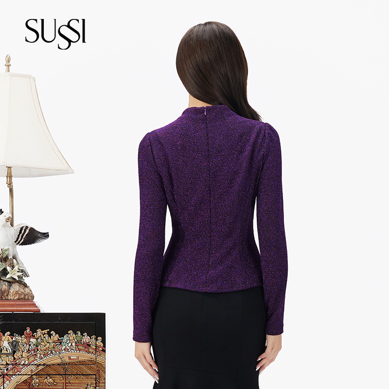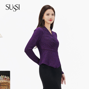 SUSSI 上衣女 古色冬紫色V领收腰裹胸气质长袖