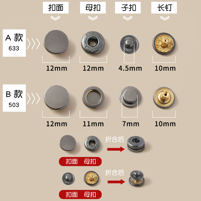 金属暗扣纽扣高档大衣按扣大号羊绒毛呢女隐形衣服摁扣子母扣手缝