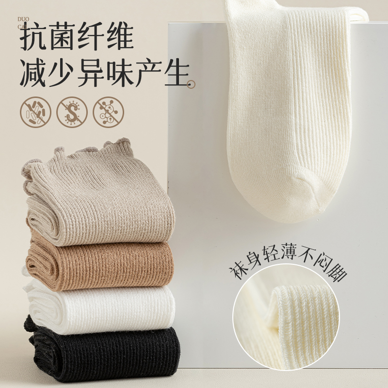 短袜 配拖鞋 无骨袜子女士春秋冬季 中筒袜纯棉防臭短筒袜多巴胺夏季