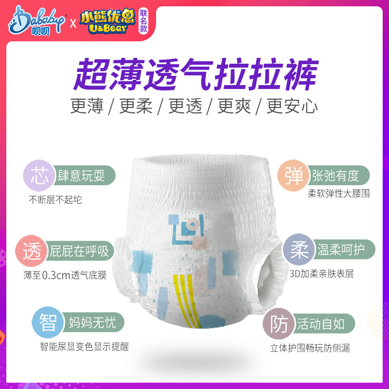 呗呗拉拉裤 学步XXL天猫U先试用 尿不湿XL超薄透气婴儿干爽纸尿裤