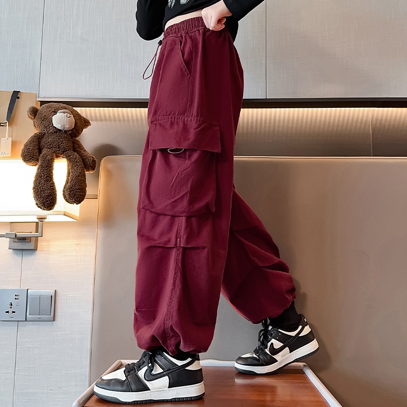 加绒街舞穿搭褶皱宽松休闲长裤 女秋冬季 子 灰色运动卫裤 自然涩美式