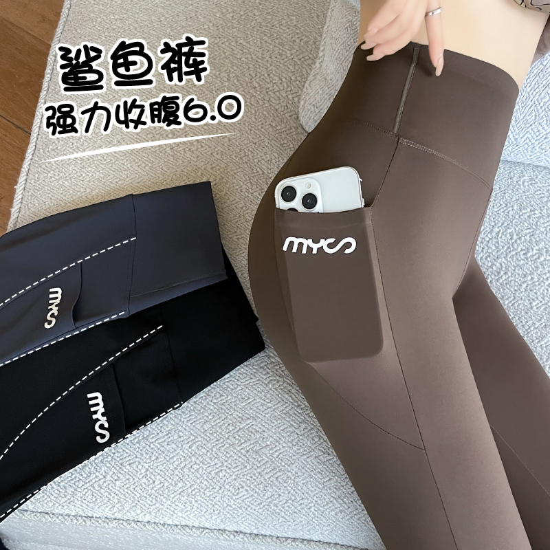 薄款 口袋鲨鱼裤 夏季 高腰提臀收腹瑜伽健美骑行打底裤 女外穿春秋装
