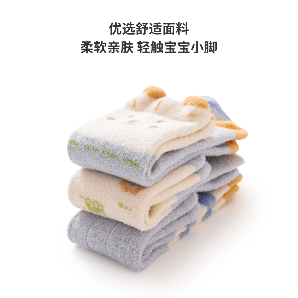 婧麒婴儿长筒袜秋冬款 0一3月新生婴幼儿宝宝加绒加厚过膝不勒袜子