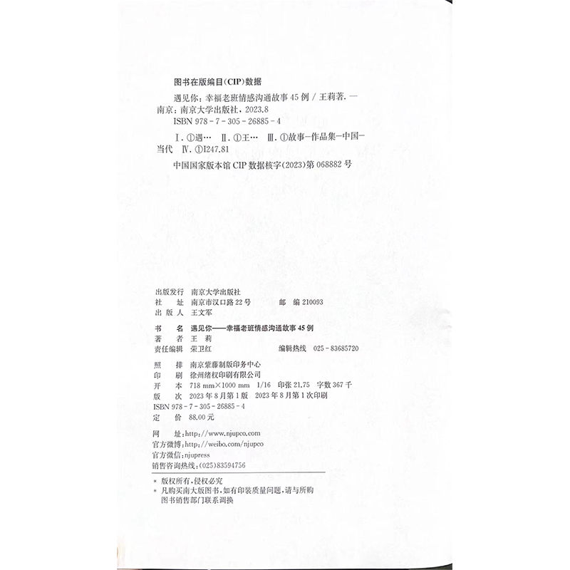 社 遇见你——幸福老班情感沟通故事45例 南京大学出版 编著 9787305268854 王莉