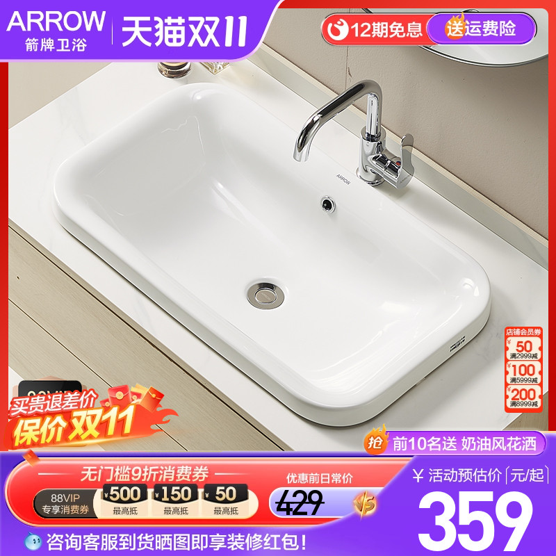 箭牌台盆台中盆半嵌入式 艺术盆卫生间陶瓷面盆方形盆洗脸盆AP4136