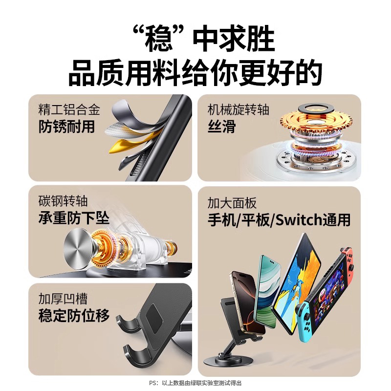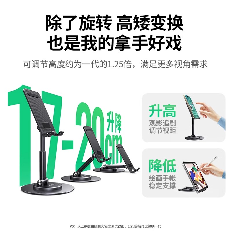 绿联旋转手机支架桌面平板手机架支架适用ipadPro支撑架直播金属合金通用折叠升降360调节多功能懒人2025新款