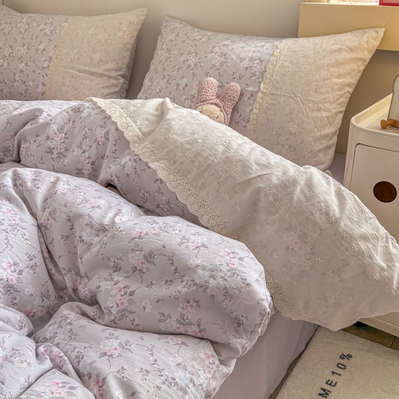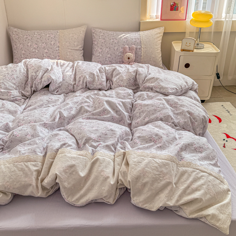 雅芳婷全棉四件套床笠款 小清新印花超柔纯棉抑菌多用被套床品套件