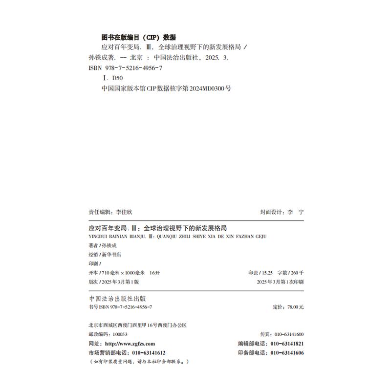 Ⅲ3 全球治理视野下 新发展格局 正版 中国法治出版 应对百年变局 孙铁成 社9787521649567 2025新书