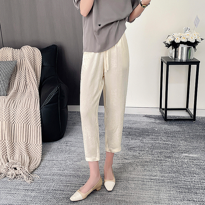 子高腰冰丝凉感宽松九分锥形休闲裤 薄裤 国风 女夏季 醋酸垂感哈伦裤