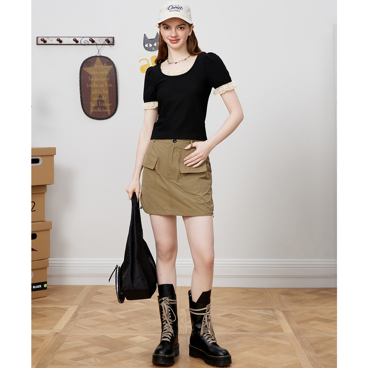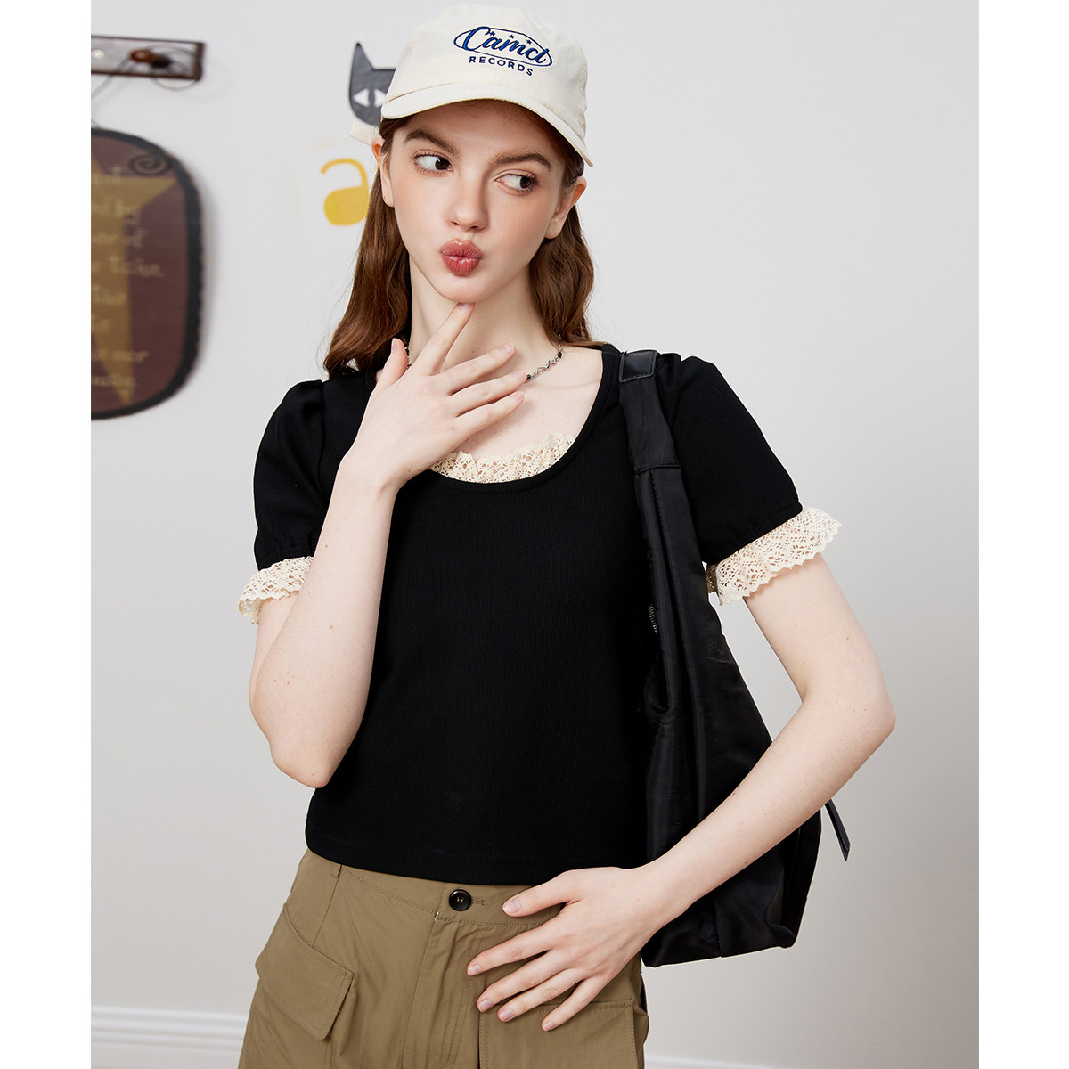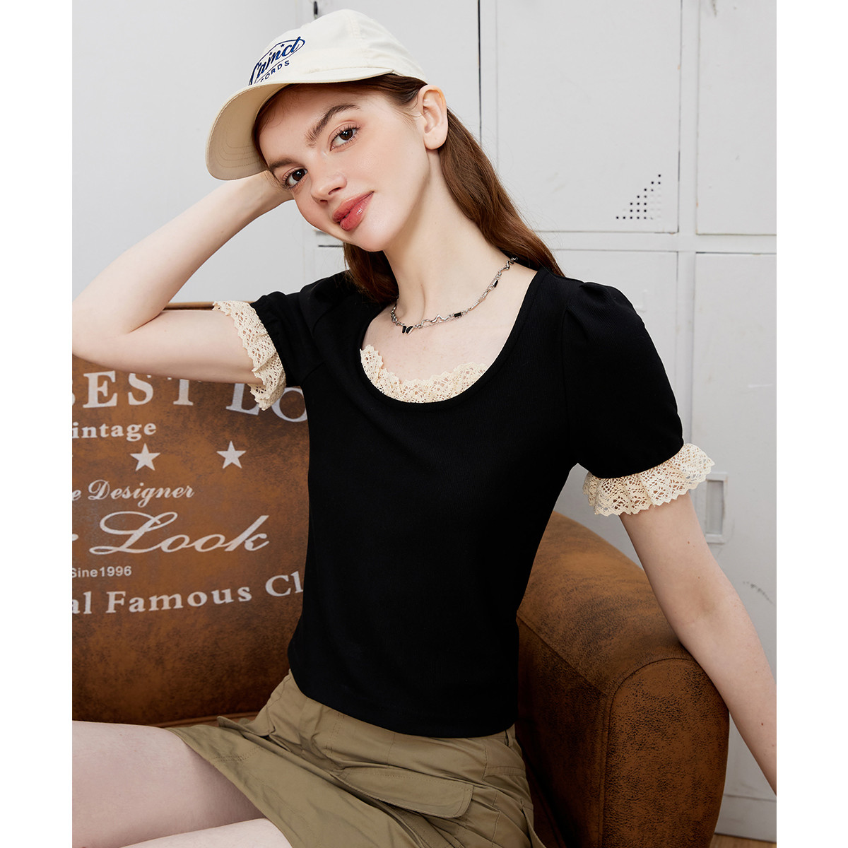 洋气百搭新款 夏季 韩版 圆领T恤时尚 宽松遮肉显瘦上衣 女士纯棉短袖