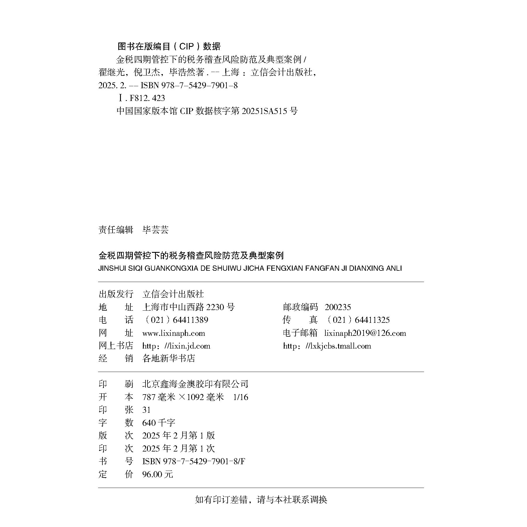 2025年金税四期管控下 社财务人员稽查风险应对策略指南政策解读疑难业务处理案例分析 税务稽查风险防范及典型案例立信会计出版