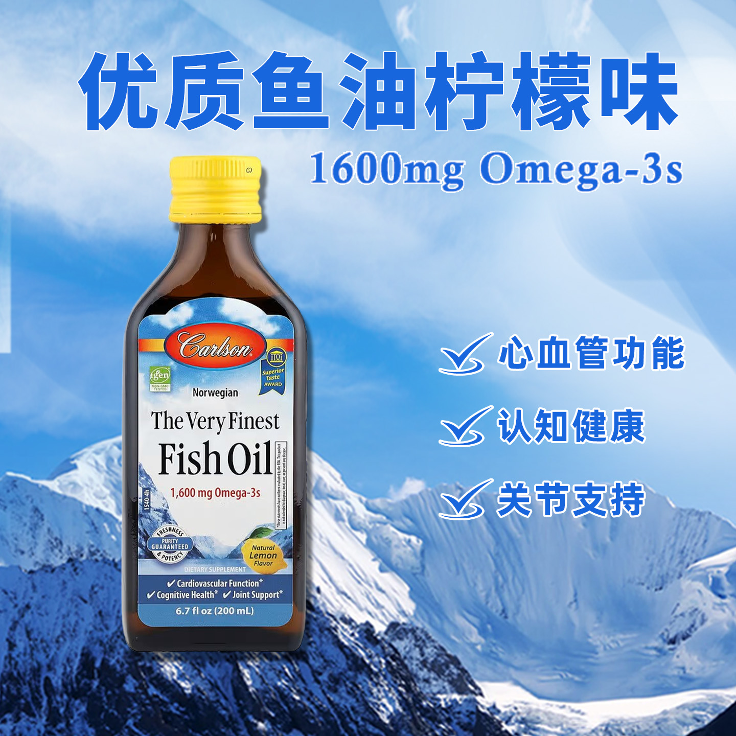 CAR_1540 CARLSON优质鱼油柠檬味液体 瓶 200ml 心血管功能