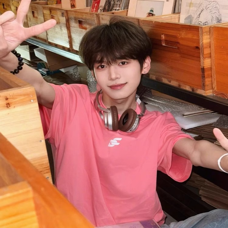 印花设计正肩上衣高级感潮流情侣半截袖 男夏季 粉色短袖 孙恩盛同款