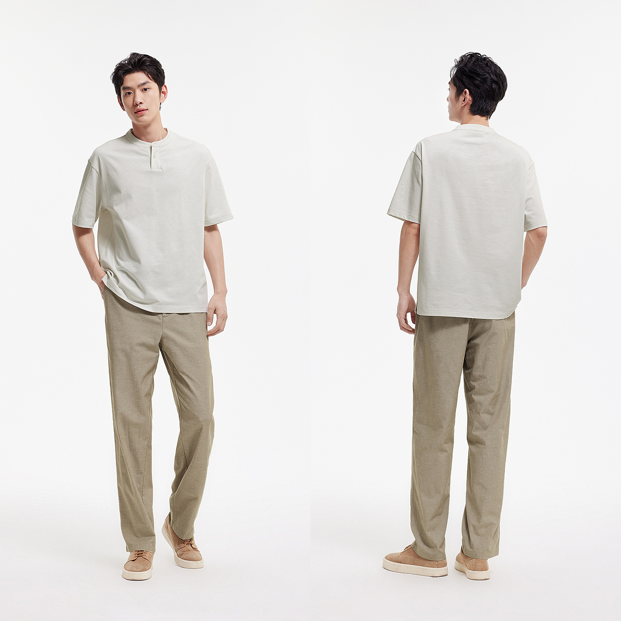 商场同款 棉麻宽松长裤 森马亚麻直筒休闲裤 新款 高级感 男2025夏季