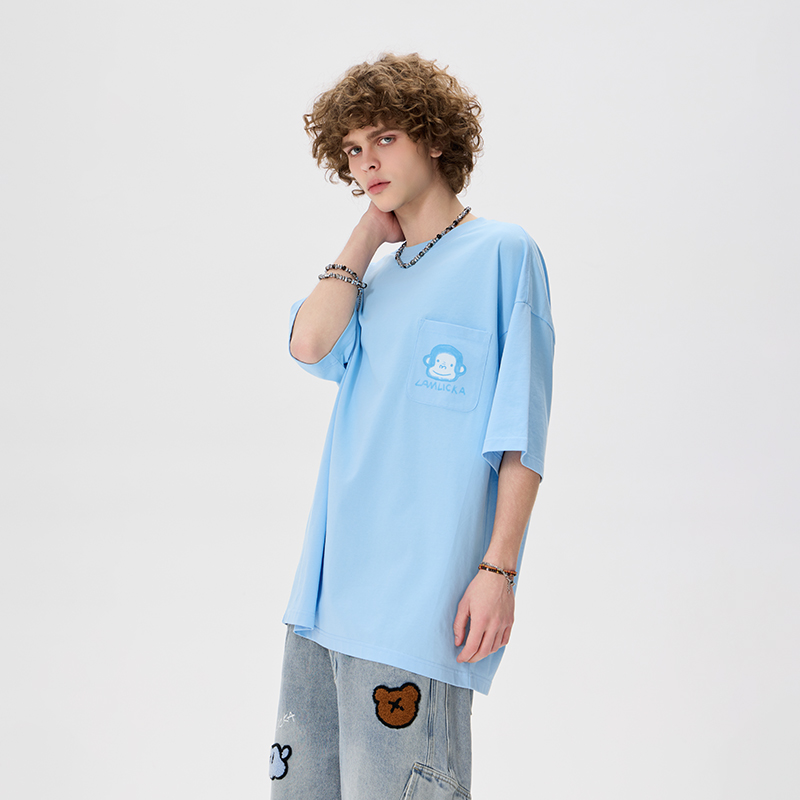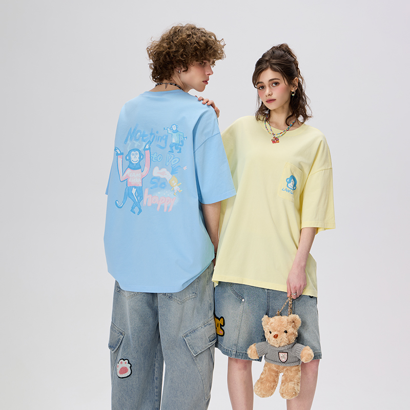 t恤 男重磅潮宽松多巴胺情侣装 LAMLICKA凉感抽象印花美式 圆领短袖