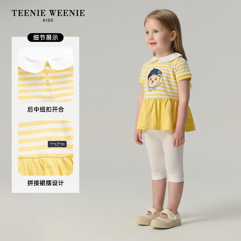 Kids小熊童装 T恤衫 25年新款 短袖 女宝宝条纹拼接裙式 TeenieWeenie