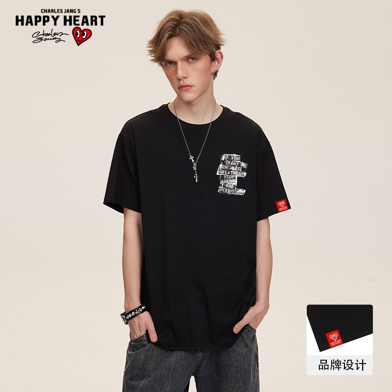 短袖 潮牌落肩半袖 t恤男美式 新款 字母印花纯棉圆领夏季 查尔斯桃心