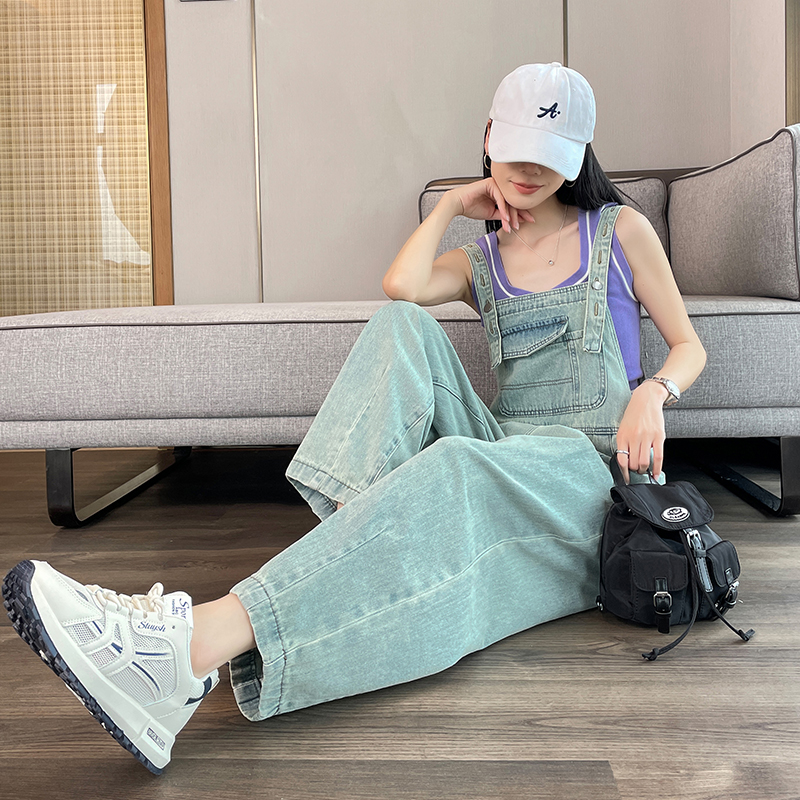 宽松显瘦九分连体裤 女2025年春夏新款 哈伦裤 小个子减龄牛仔背带裤