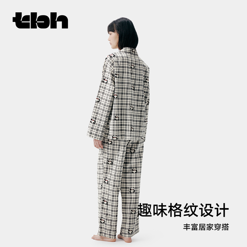 tbh野兽派家居熊猫嘭嘭天丝棉家居服套装 可外穿情侣睡衣 四季