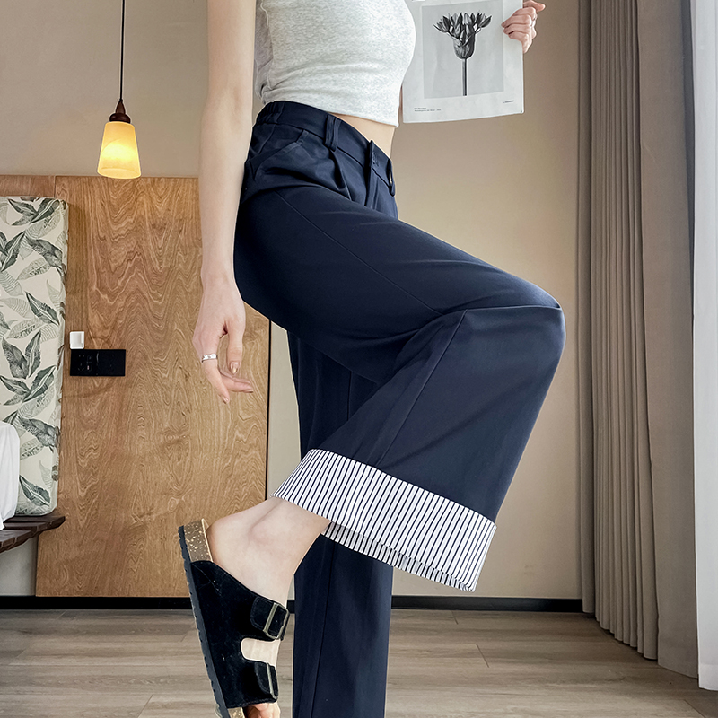 女春秋新款 休闲直筒慵懒松弛感裤 高腰垂感窄版 裤 子 西装 黑色阔腿裤