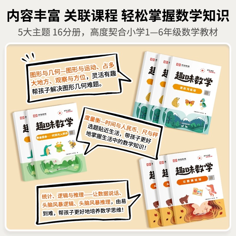 荣恒小学生趣味数学全套16册1 6年级数学思维强化训练让数学越学越有趣一二三四五六年级数学思维强化训练题时间与人民币整数分数
