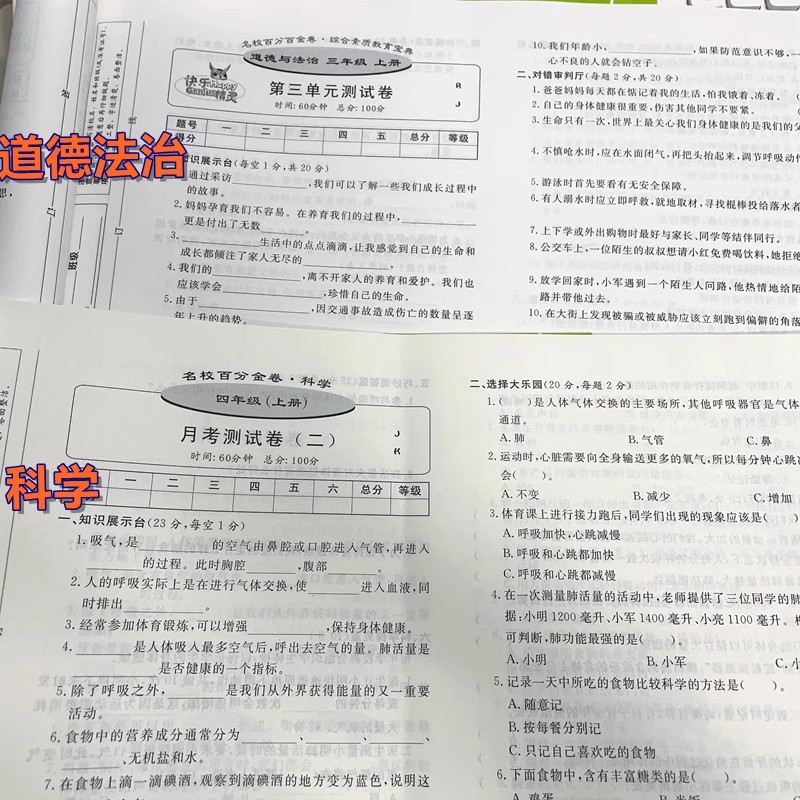 总复习测试卷同步练习作业本综合素质单元 道德与法治人教版 期末试卷 名校百分金卷小学三四五六年级上册下册科学教科版 2026适用版