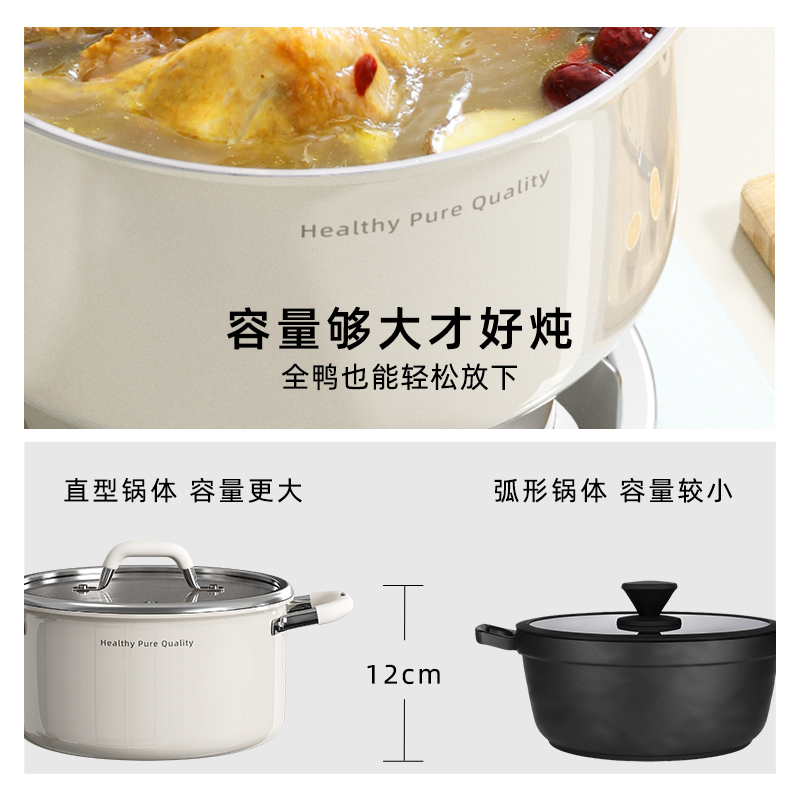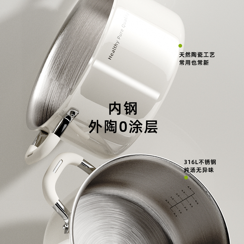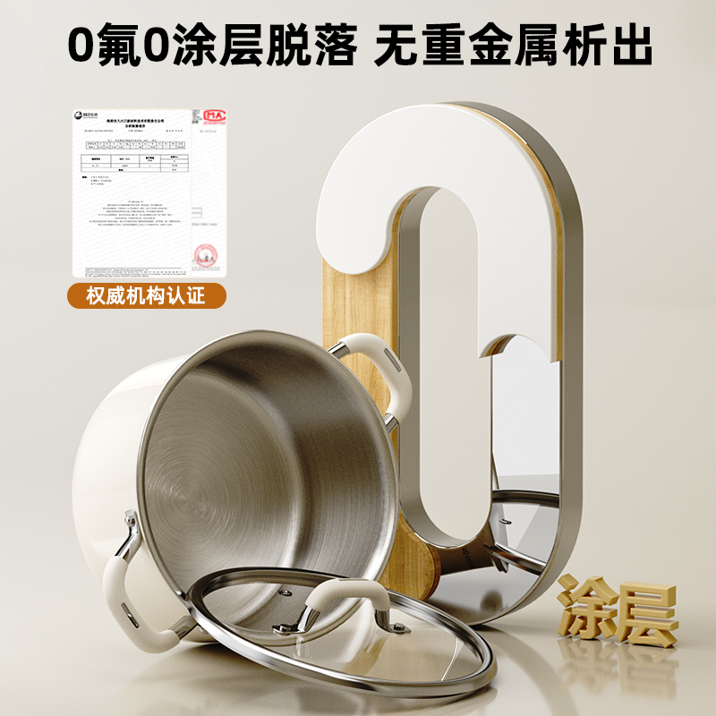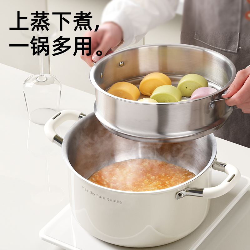 梦创汤锅不锈钢汤锅无涂层陶瓷加厚家用煲汤电磁炉燃气双耳蒸煮锅