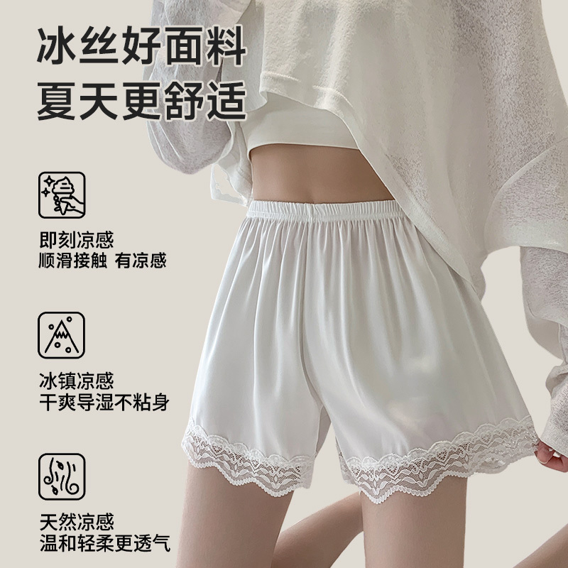 女2025新款 宽松蕾丝花边防走光安全裤 夏季 睡裤 冰丝短裤 白色打底裤