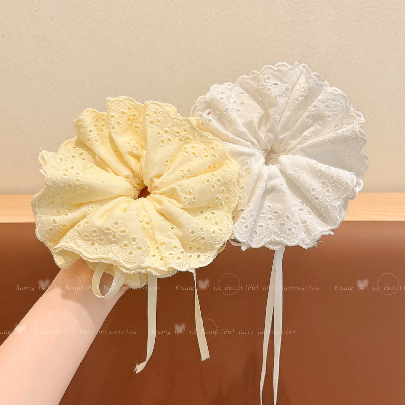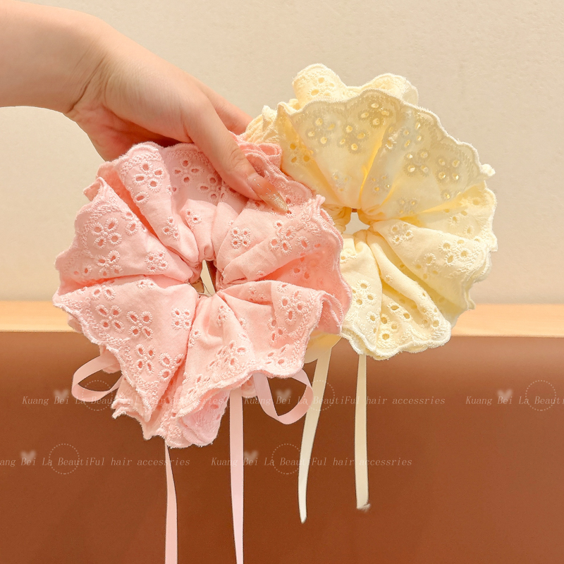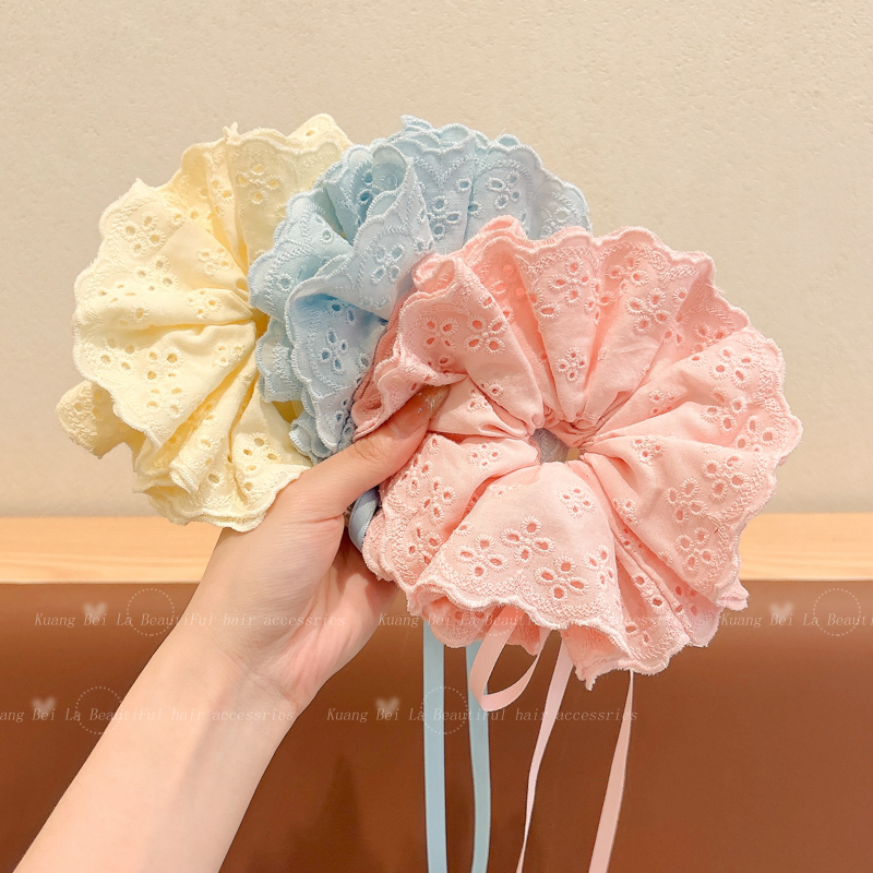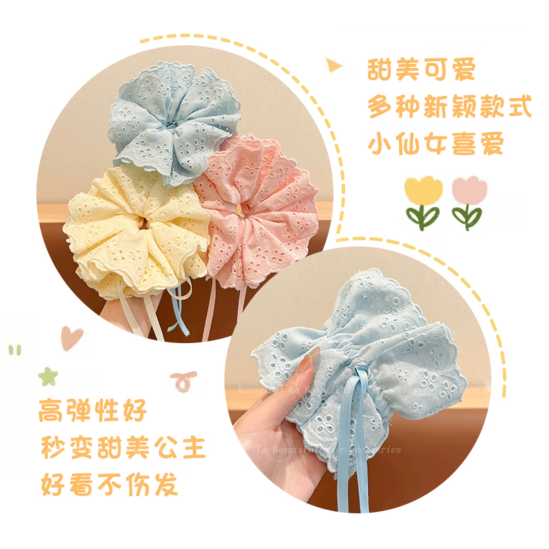 2025新款 蕾丝花边抽绳大肠发圈女孩甜美丸子头发绳儿童不伤发头绳