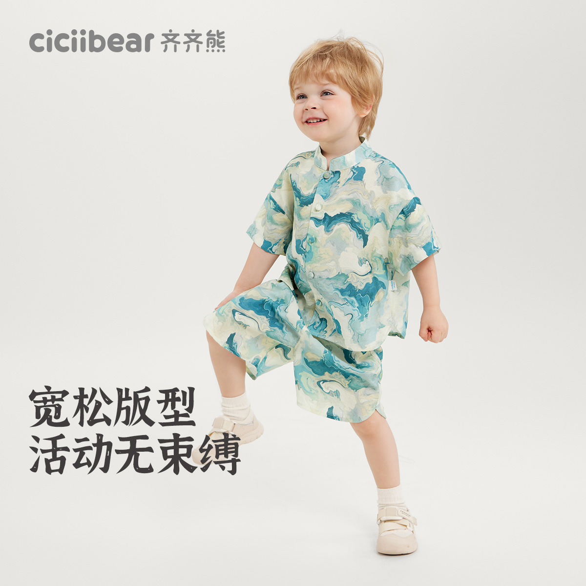 儿童衣服 夏季 齐齐熊男童汉服套装 宝宝儿童节日礼服演出服国风古装