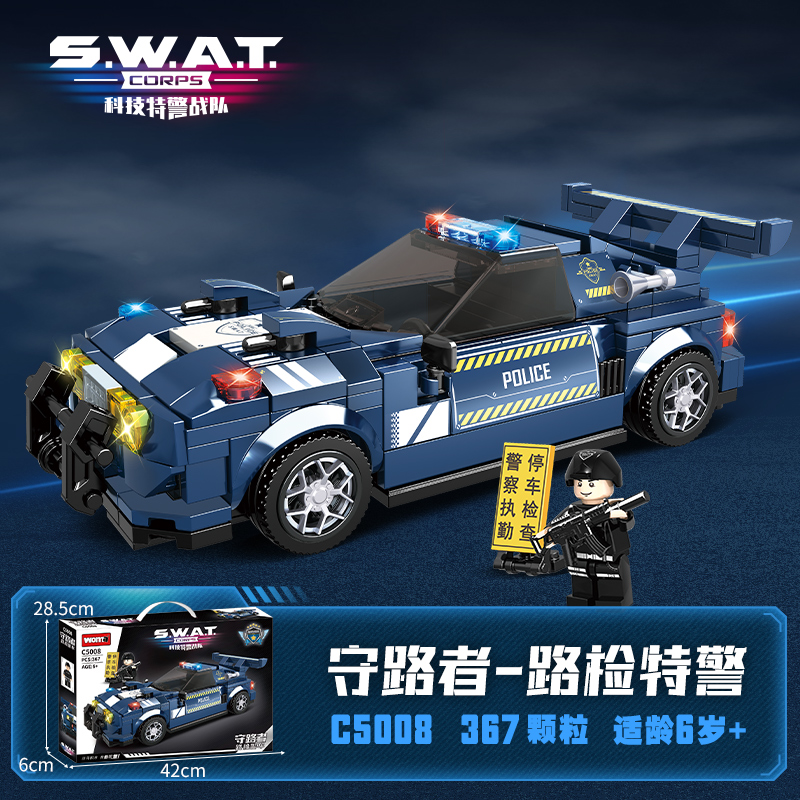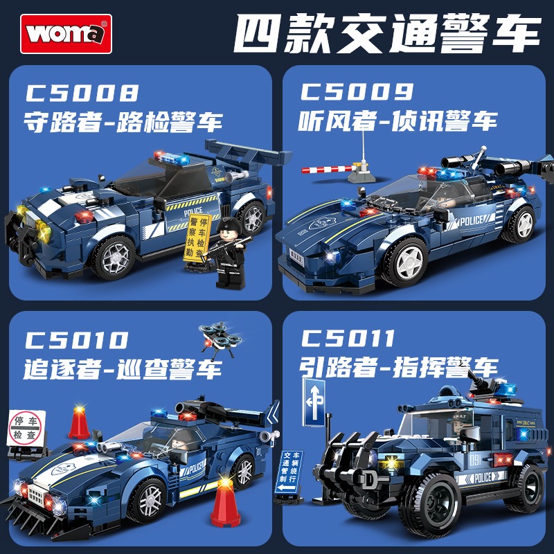沃马特警积木城市警察交通巡逻车指挥警车汽车男孩子益智拼装 玩具