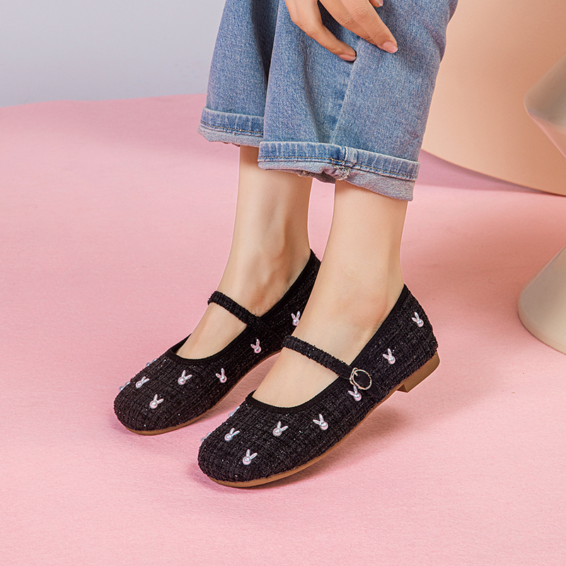 温柔配裙子圆头平底鞋 Grace 法式 小香风兔子单鞋 子 gift玛丽珍女鞋