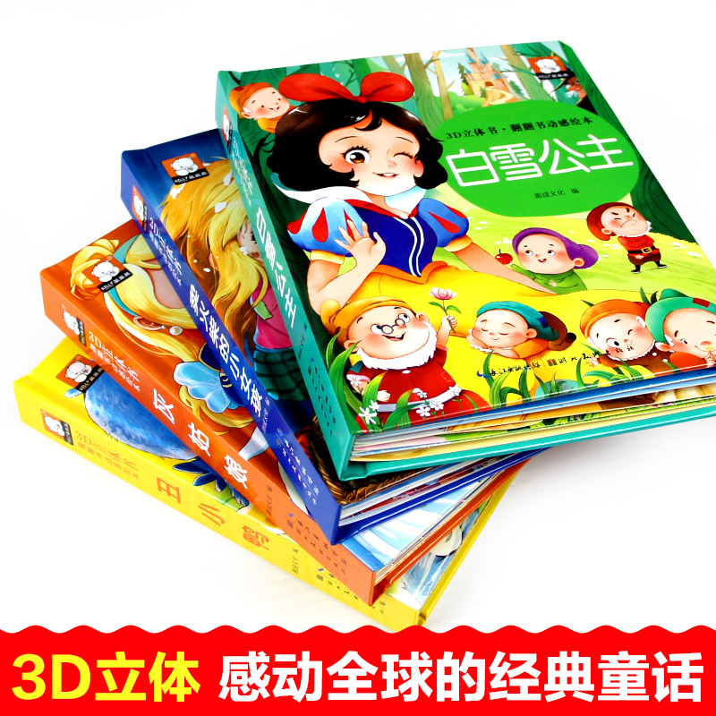 6岁翻翻书动感绘本硬壳 8岁宝宝睡前故 3D立体翻翻书 童话故事书 安徒生经典 小女孩 白雪公主丑小鸭灰姑娘卖火柴 全套4册