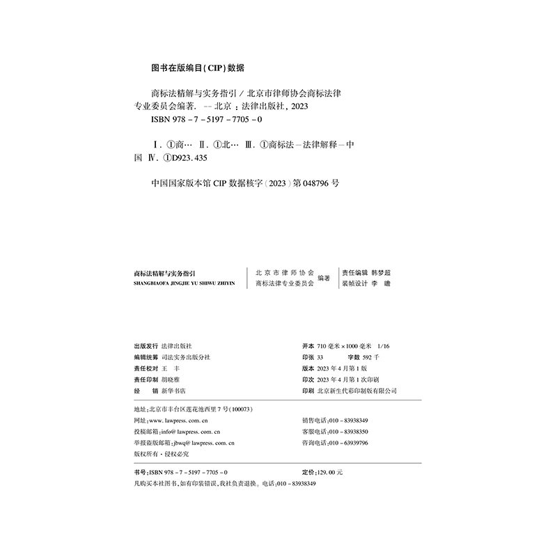 法律出版 正版 北京市律师协会商标法律专业委员会 商标法精解与实务指引 社9787519777050 2023新书