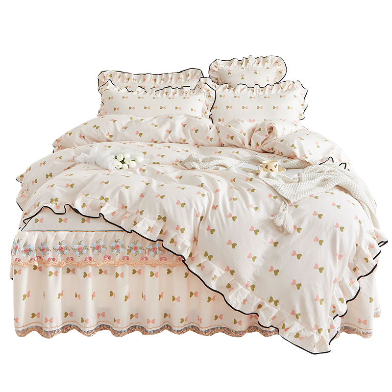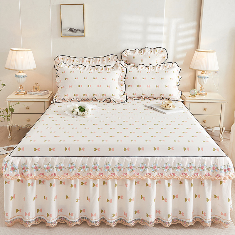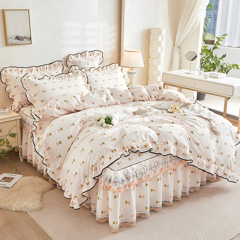 新款 通用 纯棉床上四件套全棉带床裙高档蕾丝花边床单被套床罩四季