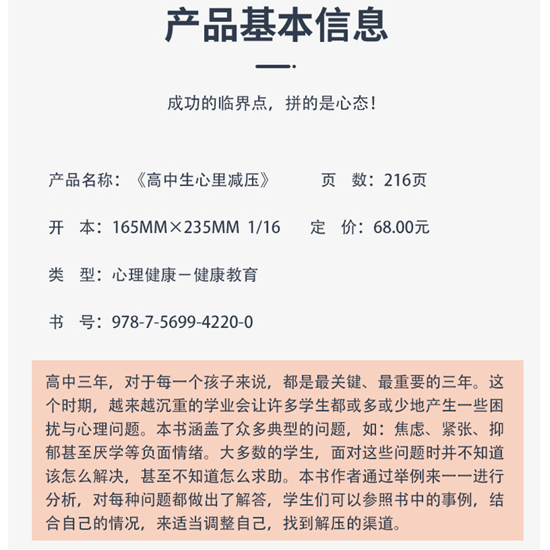 高中生心理减压冲刺高考高中生心理健康教育做自己 高中人际关系减压心理调节书籍 心理医生缓解压力技巧焦虑抑郁心理学疏导书籍