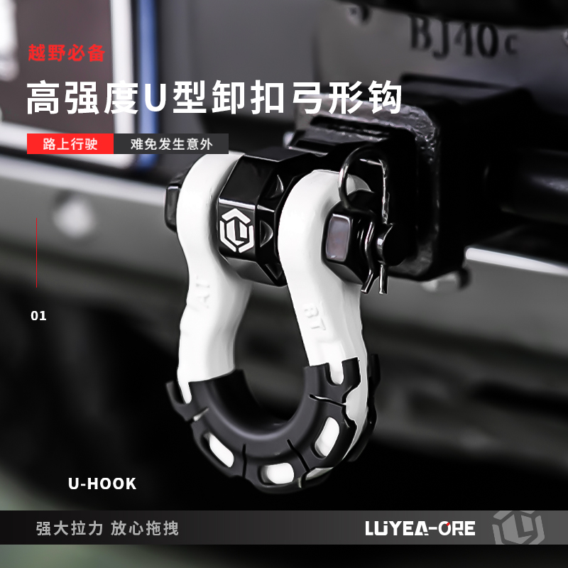 路野装 高强度拖车环美标卸扣 备越野车卸扣弓形U形拖车钩马蹄美式