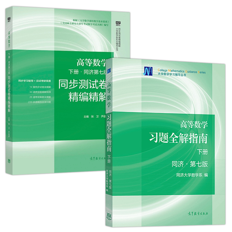 社同济大学第七版 高等数学习题全解指南 高等教育出版 同步测试卷精编精解下册 高数辅导用书练习题集AB卷历年考研真题解析 同济7版