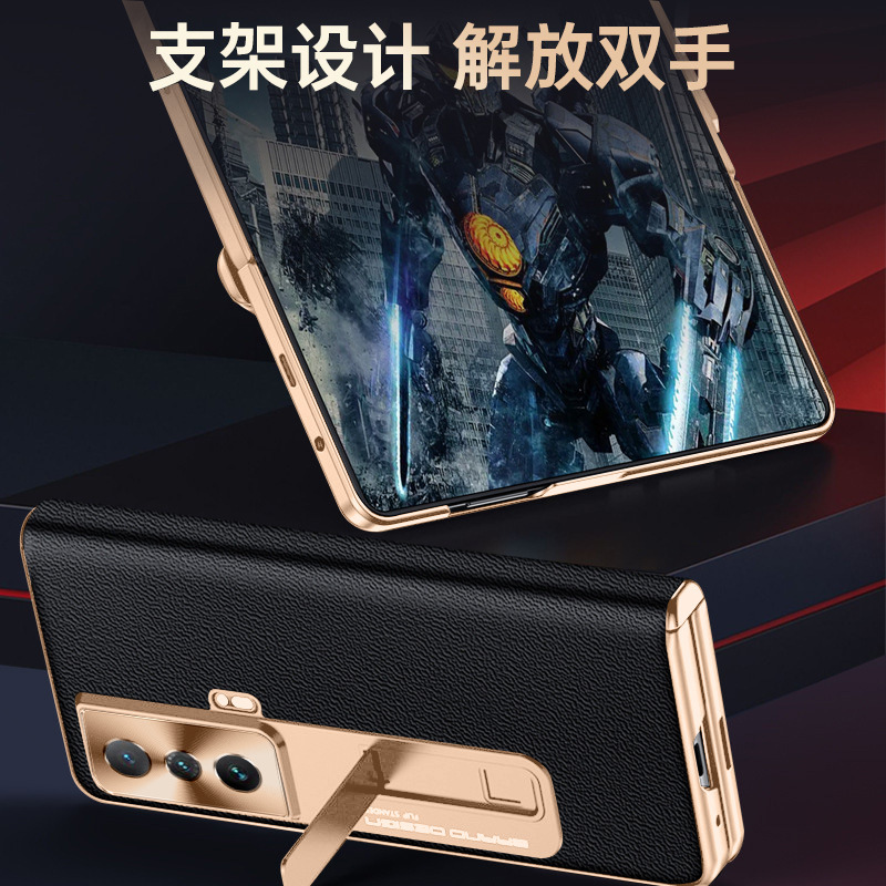 Fold6电镀折叠屏保护套fold5壳膜一体w24铰链全包防摔fold7外壳 适用于三星fold4手机壳纳帕纹新款 Galaxy