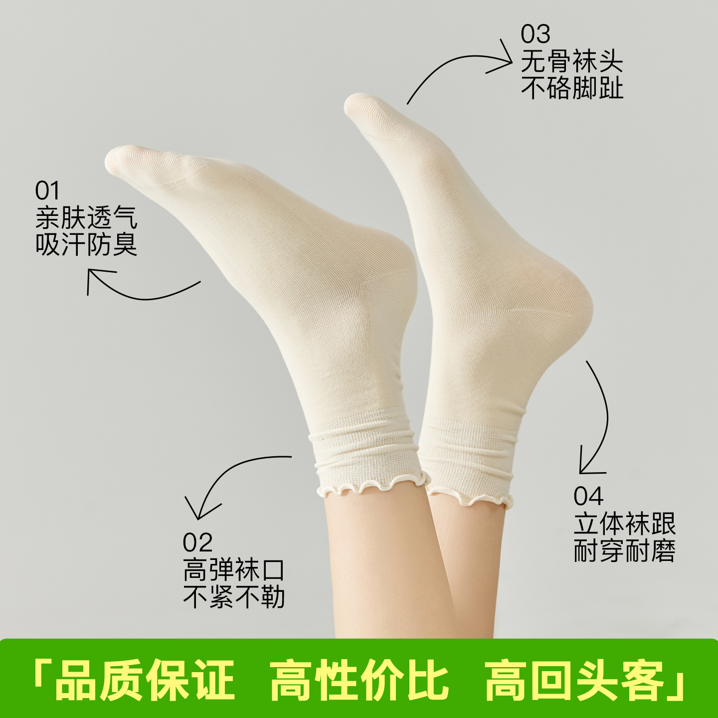 爆款 短袜无骨女士浅口短筒袜2025新款 中筒袜 薄款 白色袜子女士夏季