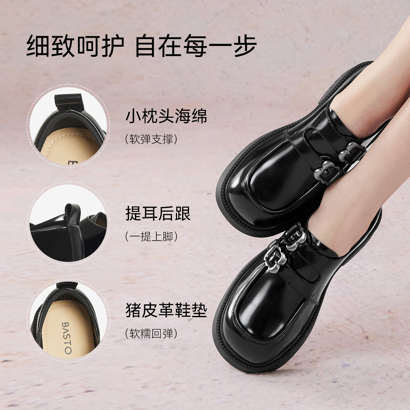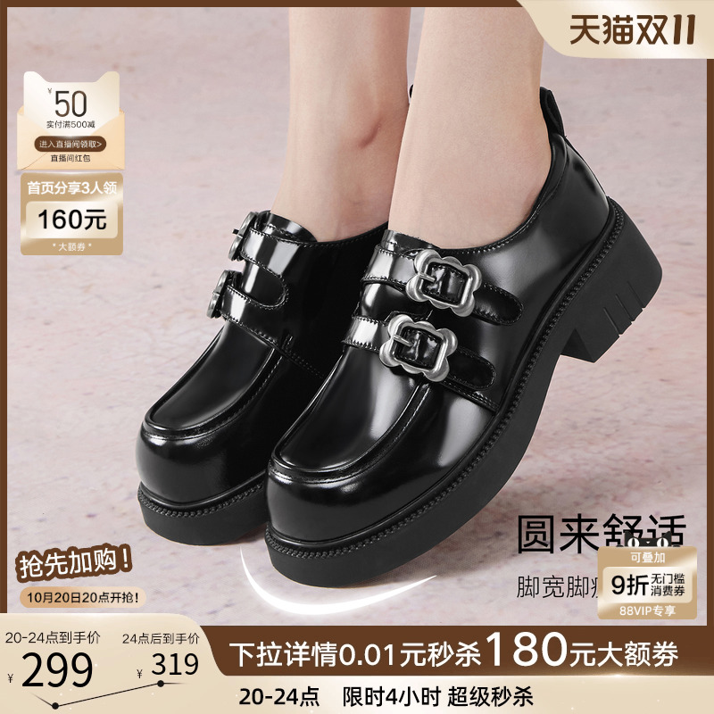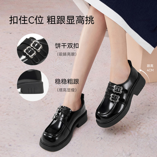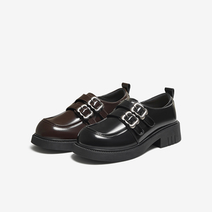 2025秋新款 布洛克中粗跟皮鞋 HL257112 系带牛津鞋 哈森漆皮德比鞋